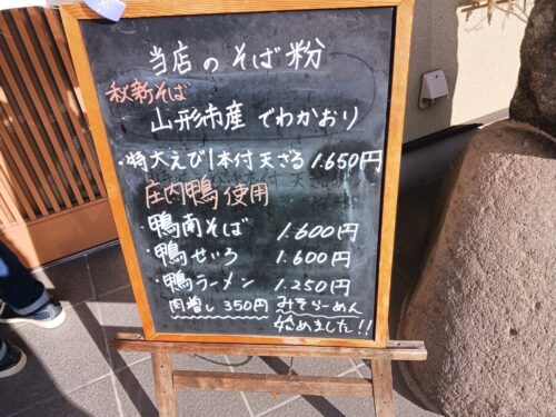 こちらは入口においてある看板。そば粉の種類や季節ものなどが書かれています。