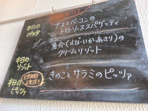 パスタ・リゾット・ピッツァは日替わりとなります。こちらが伺った日のメニュー。