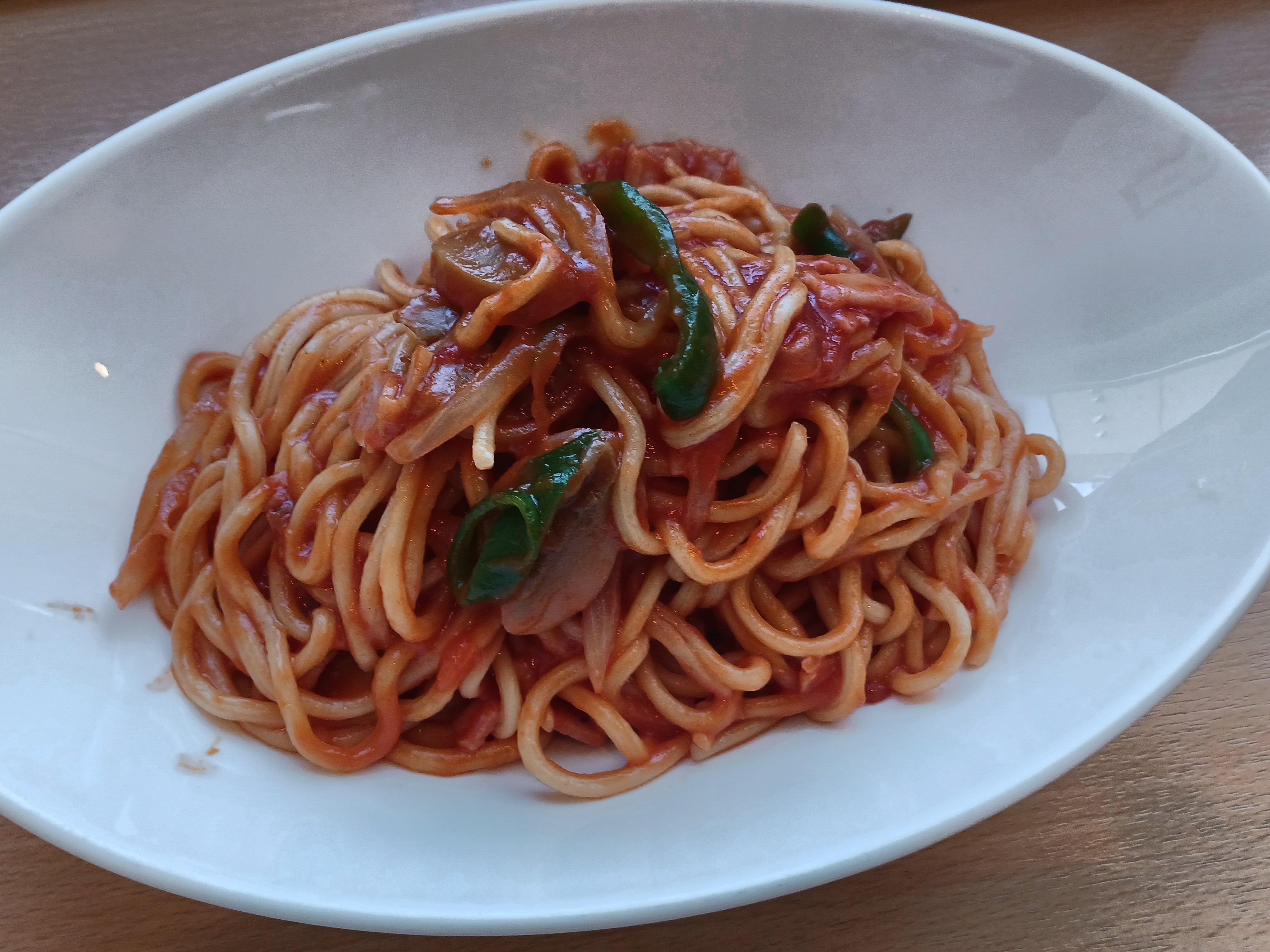 麺はちもちですが、やや柔らい印象です。ナポリタンというメニュー上そこはしょうがないところでしょうか。