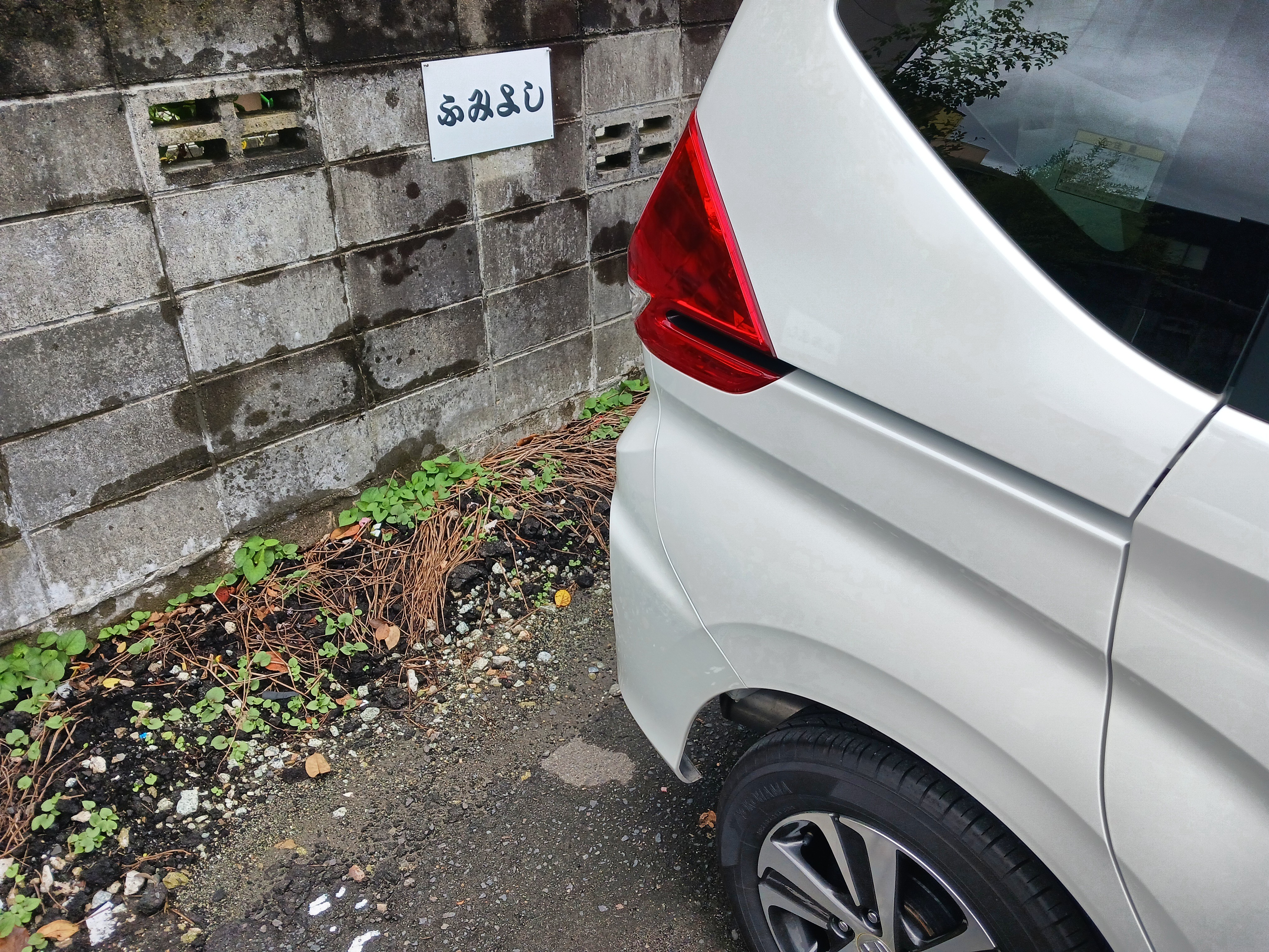 駐車場はお店のわきと裏。共用で場所が決まっているので注意が必要です。