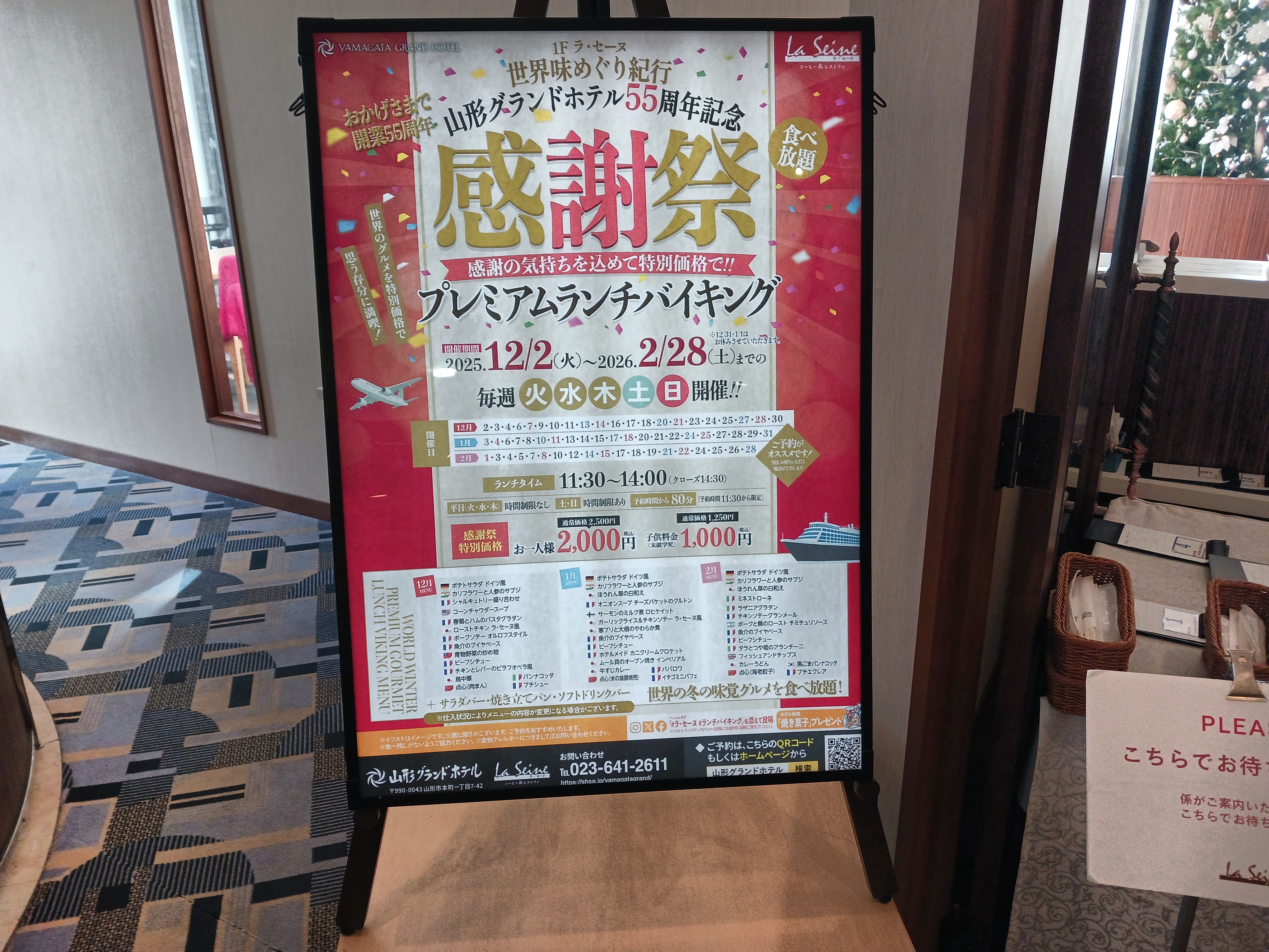 和洋中に:山形グランドホテルの世界味めぐり紀行も3年目に突入しました。12月からはホテル創立55周年にあわせ料金も感謝価格になっています。
