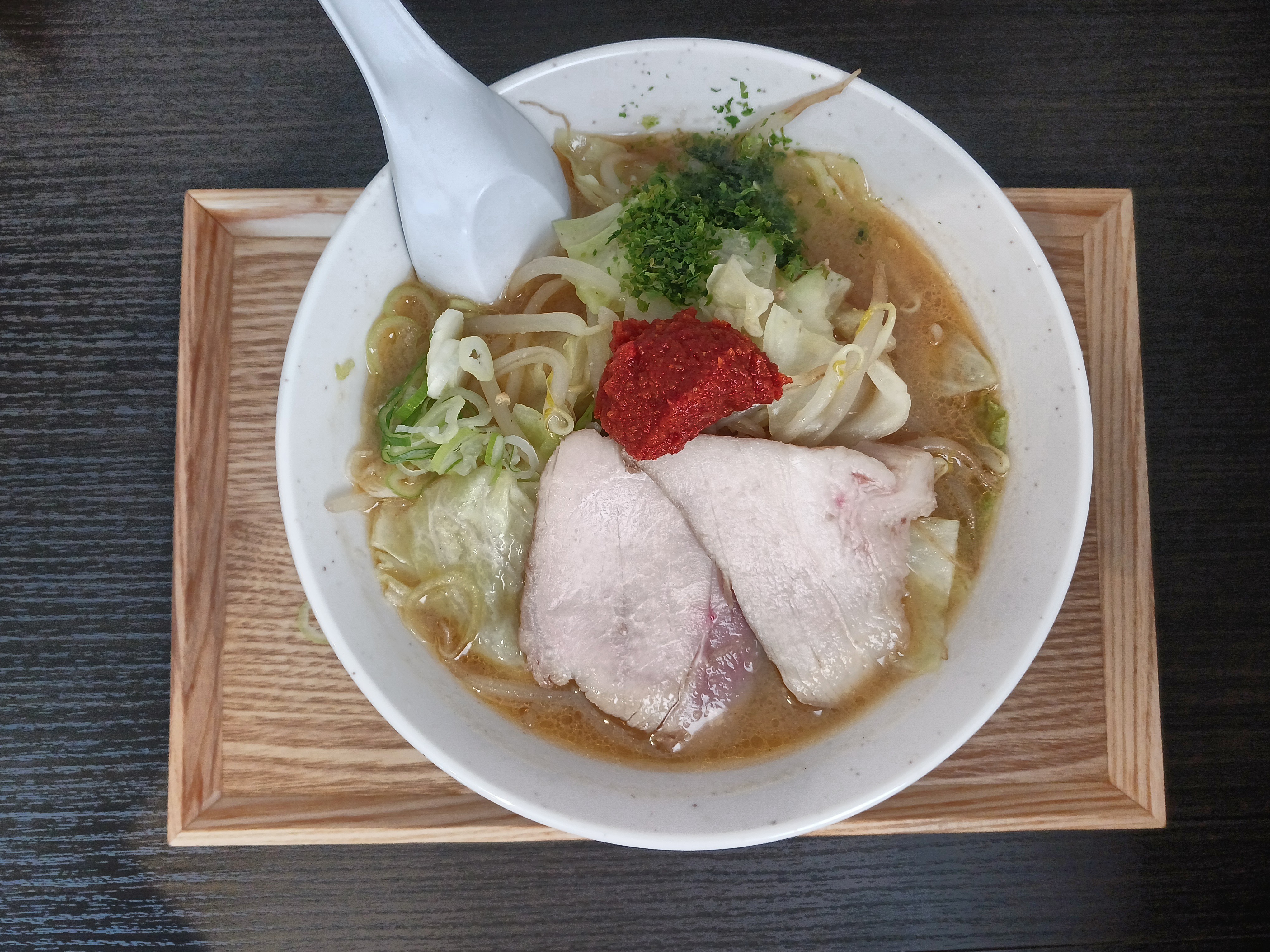 キャベツやもやしの入った山形辛味噌らーめんという丼面ですね。源流であろう赤湯の龍上海の辛味噌らーめんは野菜はネギのみです。