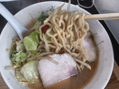 少し香ばしさも感じるスープ。油は浮きますがわりとあっさりめ、旨味はしっかりと感じます。実はこのお店は麺屋丸文の厨房を仕切ってた方が始めたお店。らーめんは手慣れたものです。
