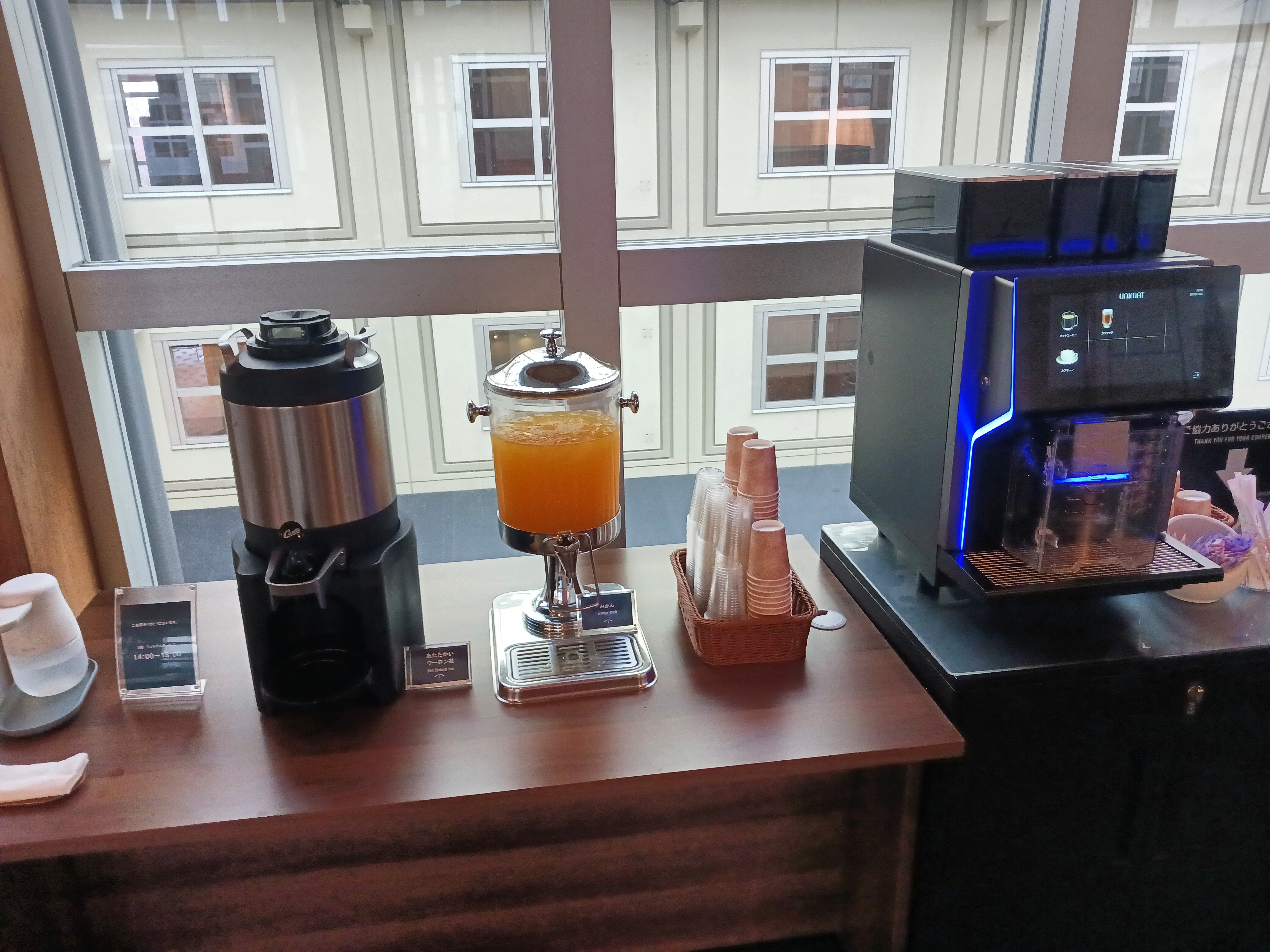 フロントの階にあるのはウエルカムラウンジ。こちらはソフトドリンク・コーヒーのみになります。
