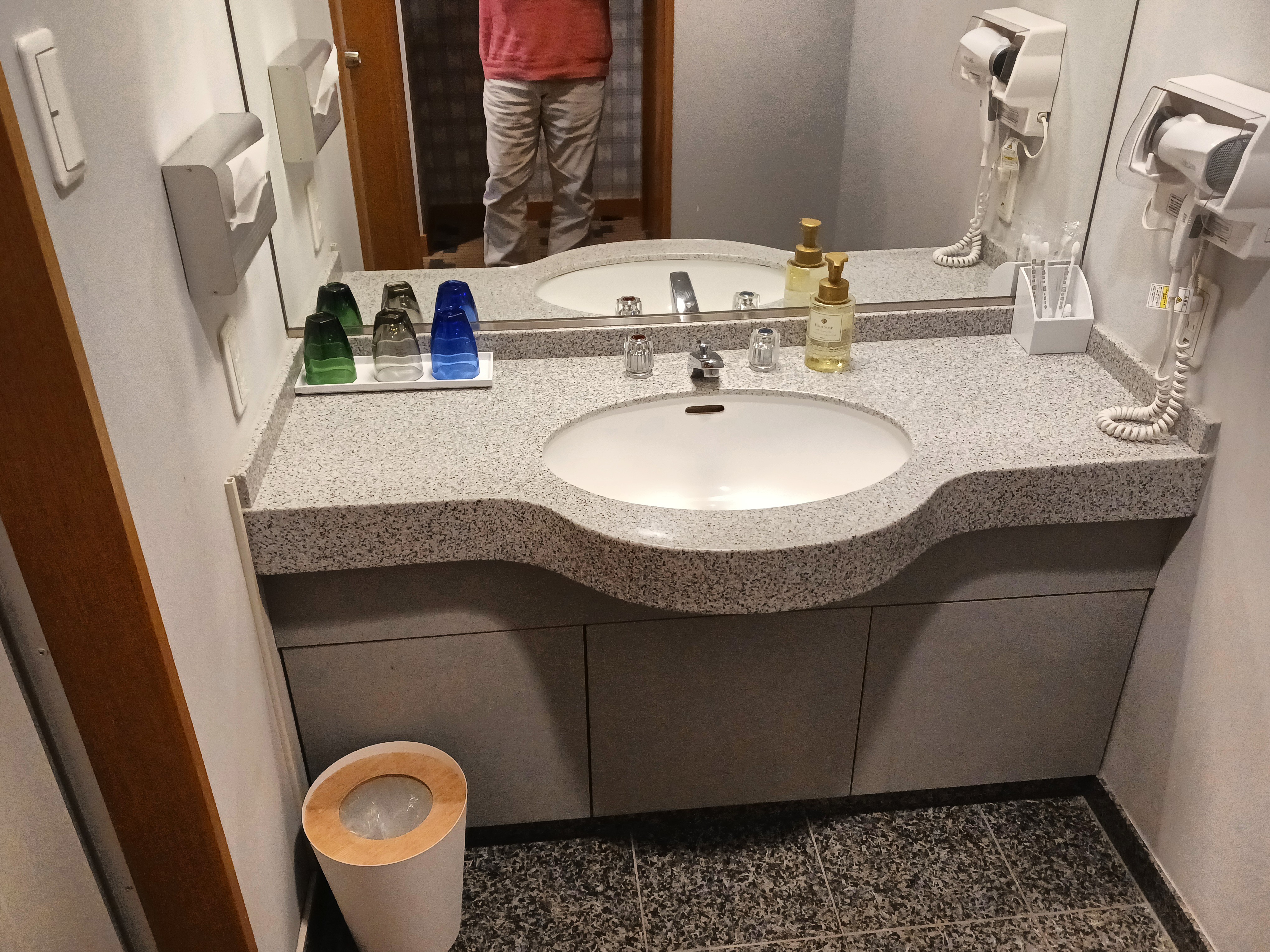 お宿のお楽しみは温泉と食事。 まずは夕食まえにひとっ風呂。 こちらのお宿は内湯と露天があります。露天のみ温泉で、加水加温有・循環有・塩素投入ですが、屋上にあるインフィニティタイプなので眺めは最高です。 大浴場の男女は固定でした。 パウダールームのドライヤー・タワーファンなどは湯上がりラウンジ