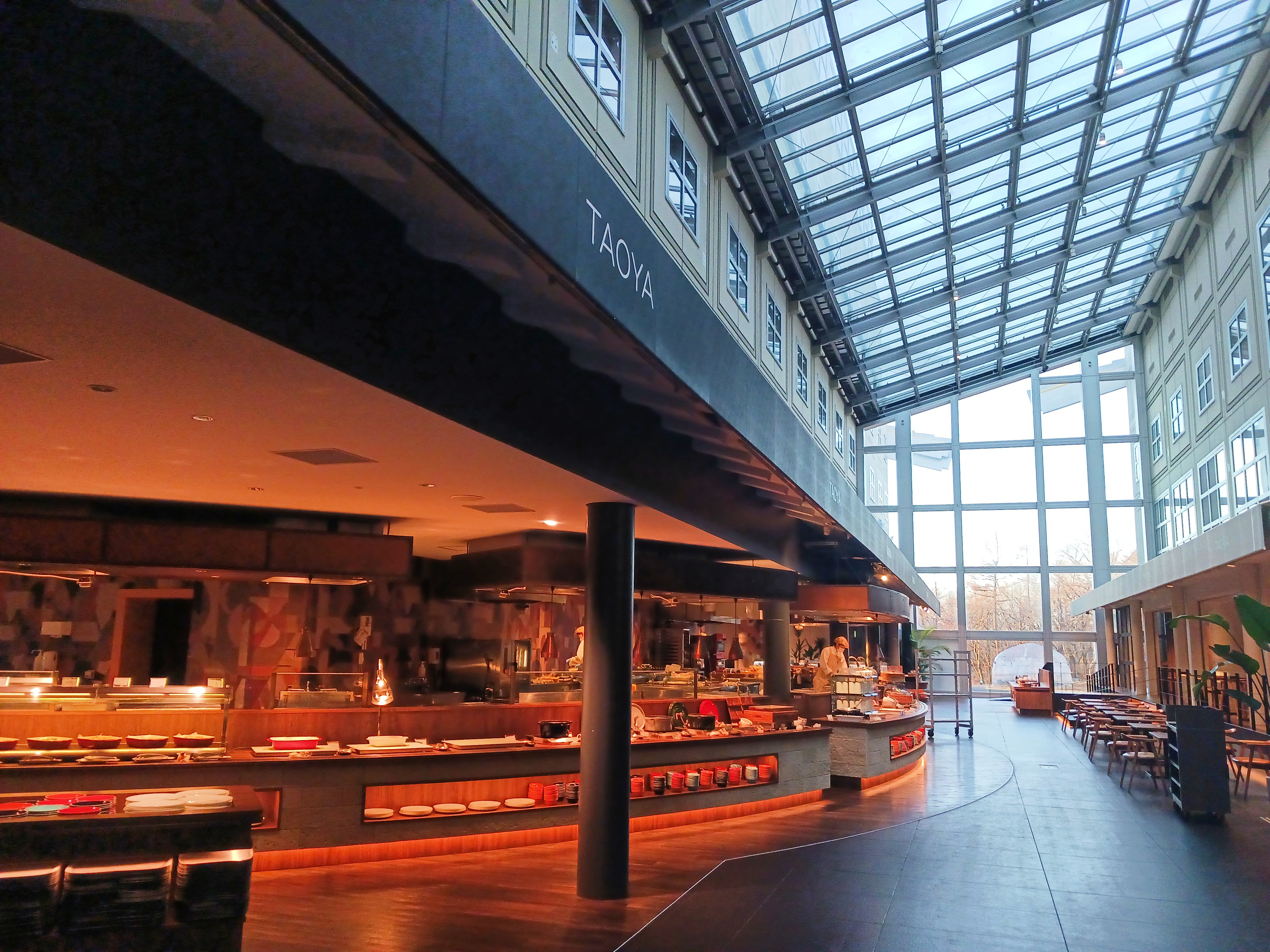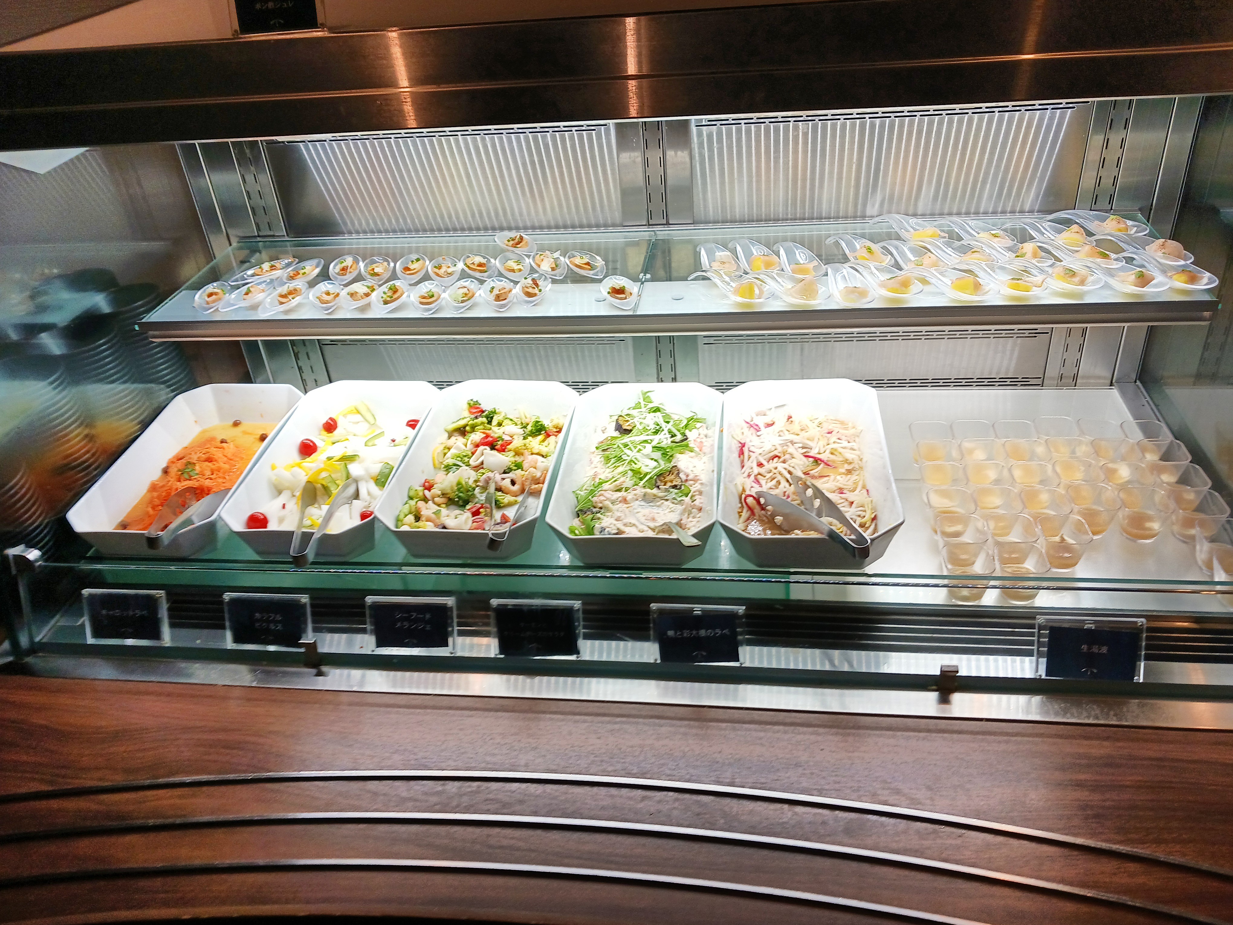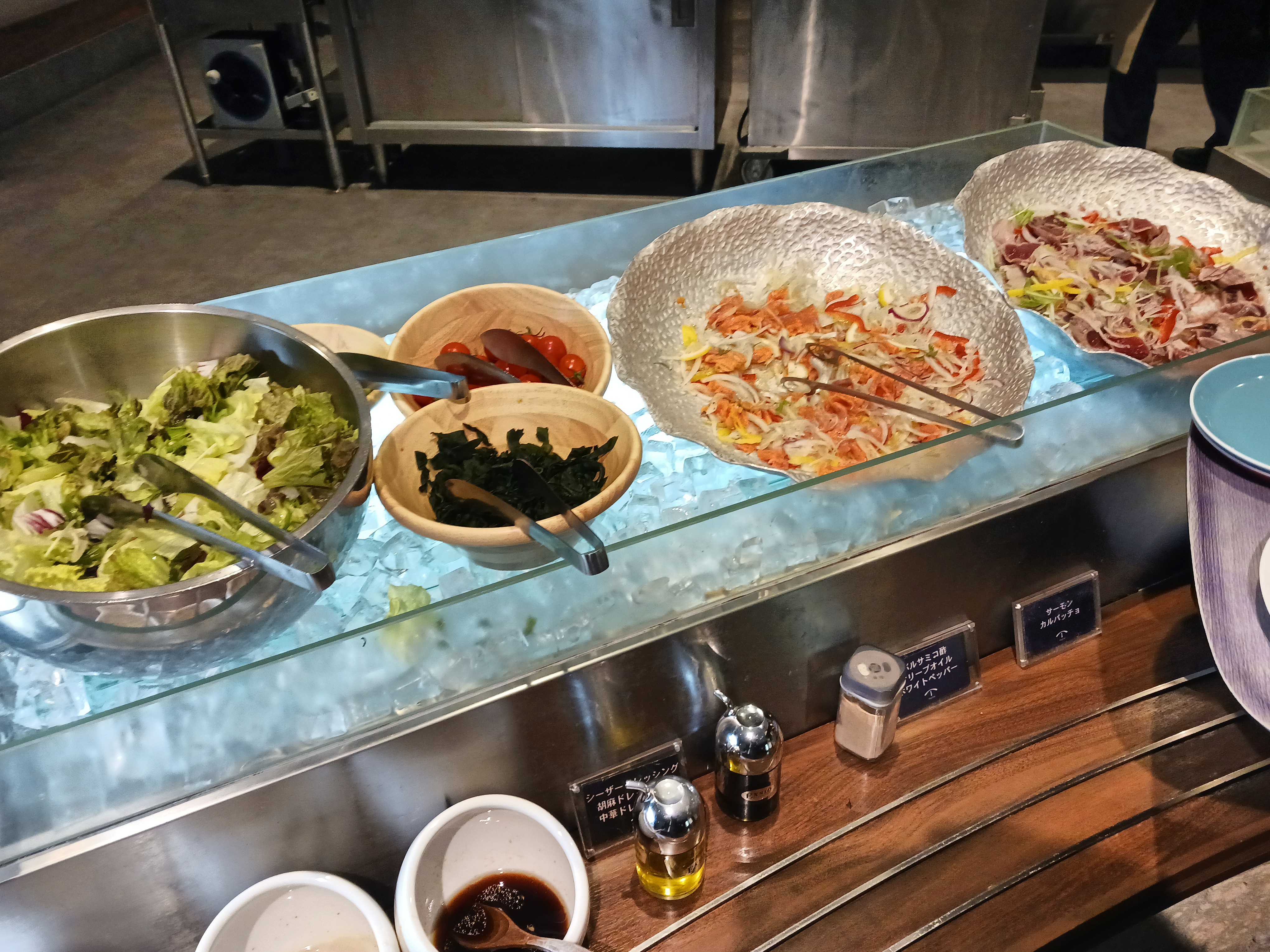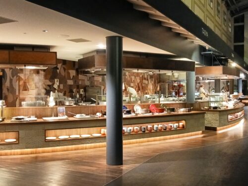 こちらのレストランは長いライブキッチン(全長約35m)が特徴的。次はライブキッチンのもの中心にとってみました。