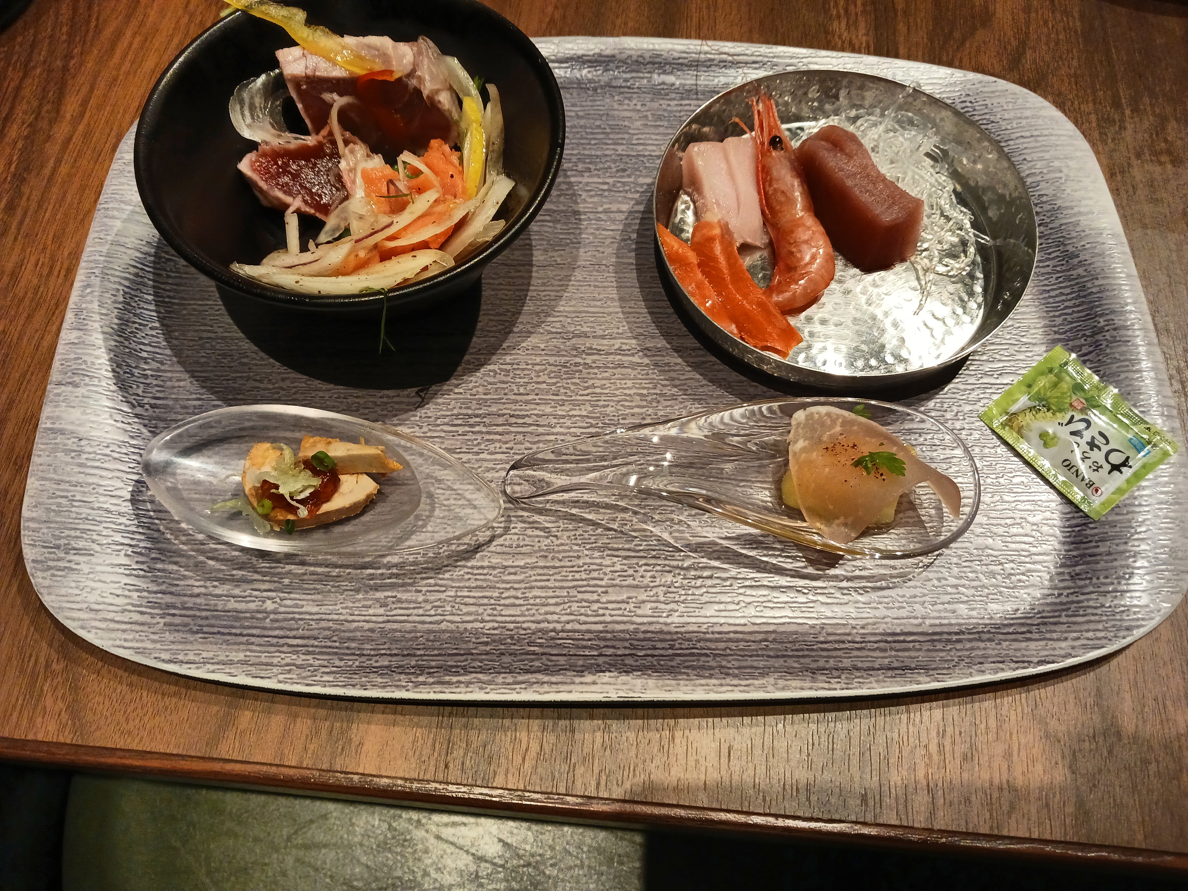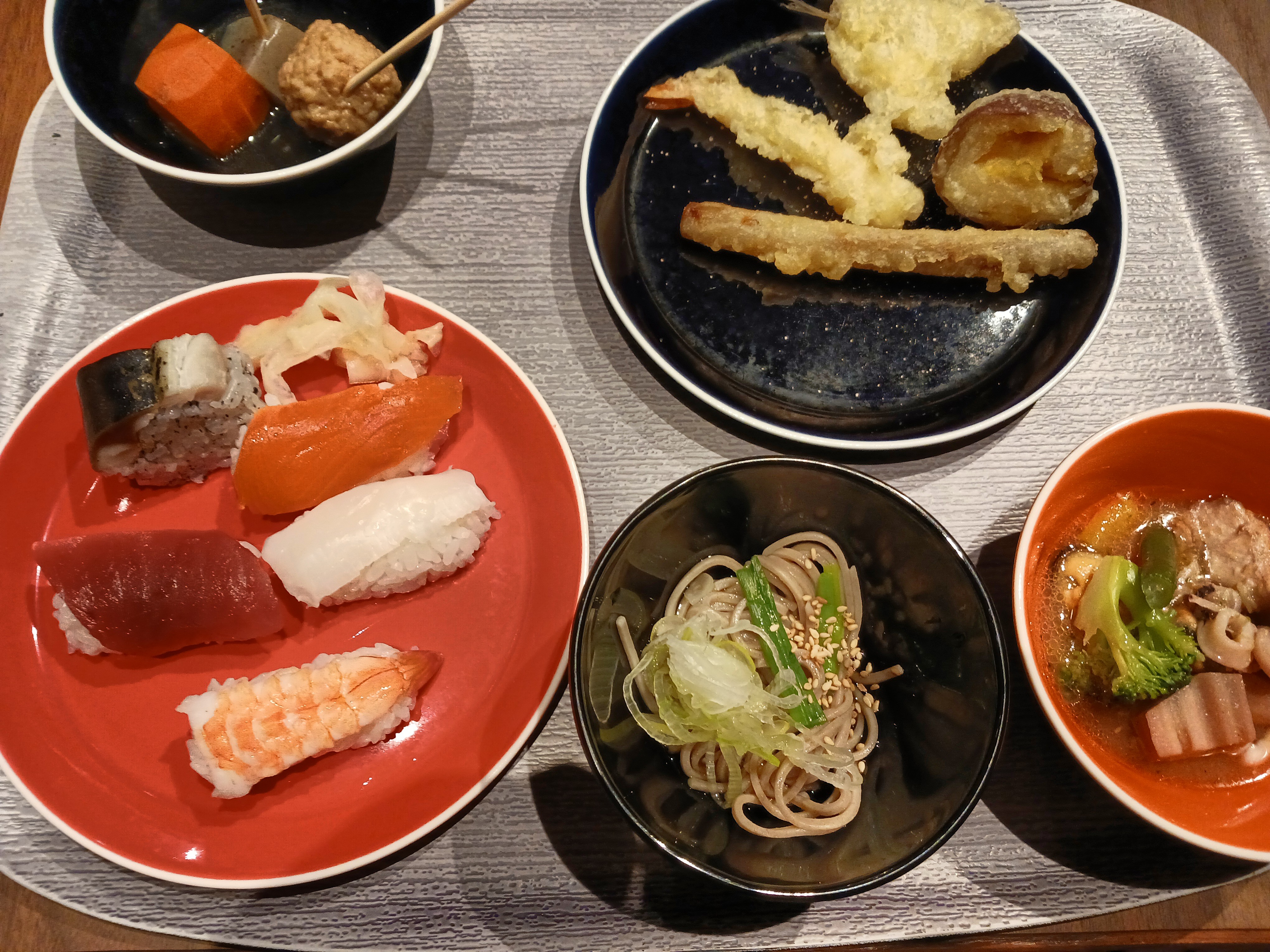 魚の質はいつもの大江戸という印象。カツオ・サーモンはまあまあという印象です。あとで取ってくるお寿司もふくめ、回転寿司ぐらいだと思います。