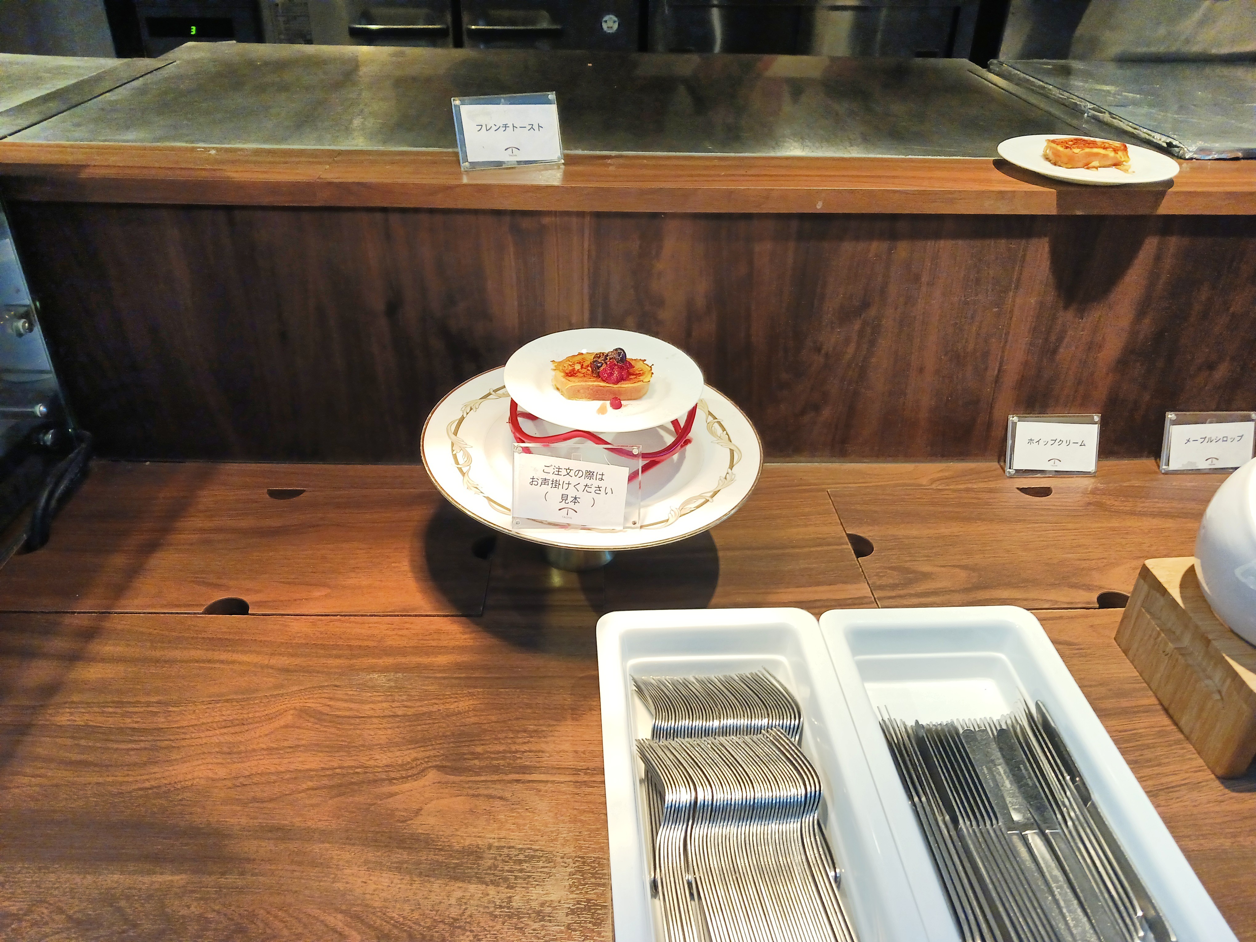 🟢種類は少ないとは思いませんが、実演はフレンチトーストのみ。オムレツとかもあるとよりより良いと思います。